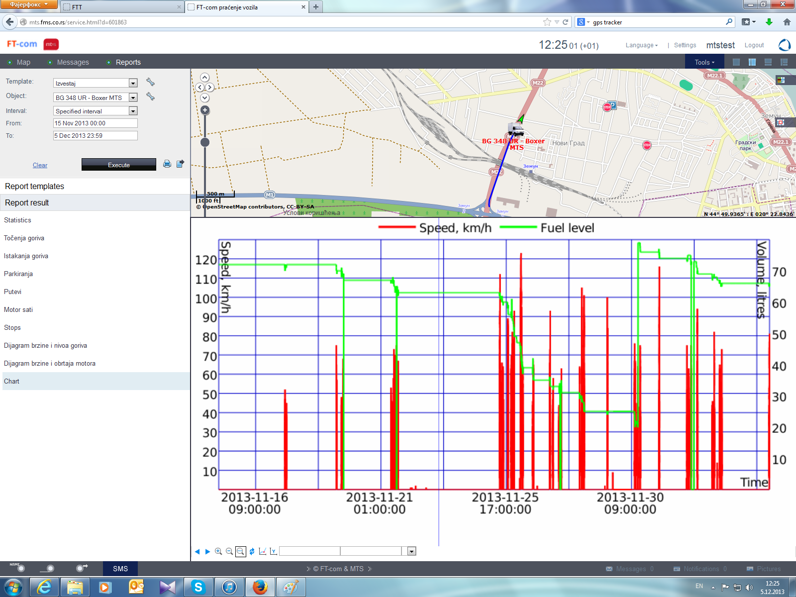 - dijagram potrošnje i stanja goriva u rezervoarima