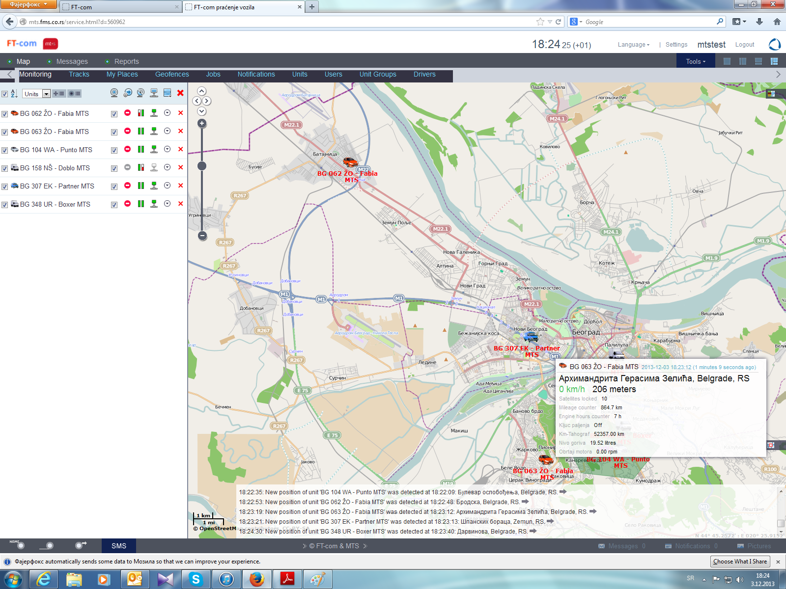 - Prenos podataka preko GPS/GPRS i SMS tehnologije: